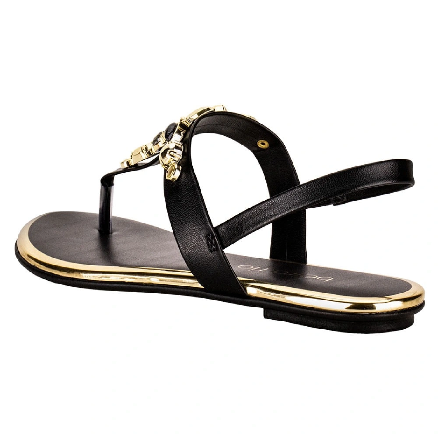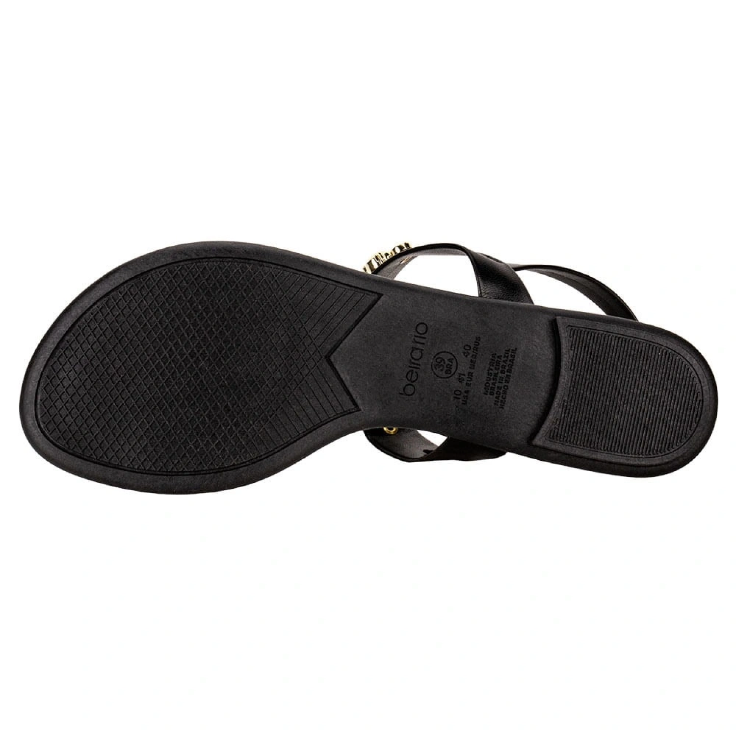 Beira Rio, renowned for its craftsmanship and innovative designs since 1975, offers the Women's Flat Sandal in Black. These sandals are exquisitely crafted from high-quality Eco Leather Napa Turim, enhanced with metallic details for a touch of elegance. The sophisticated black color makes them a versatile addition to any wardrobe, ideal for various occasions, from day-to-day wear to evening outings. They feature a comfortable PU insole and a durable rubber sole, ensuring both comfort and longevity. The sleek design and meticulous attention to detail reflect Beira Rio's commitment to style and quality in every pair