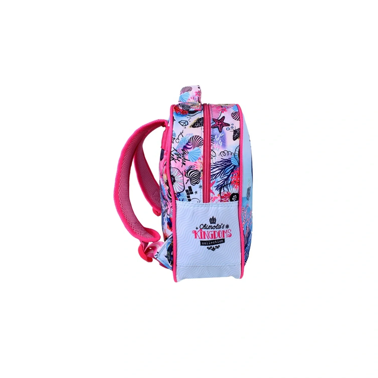 Chimola is a Brazilian brand known for its high quality and playful design that inspires imagination and joy. The Sirena Shine backpack in Bubble Pink brings a magical oceanic charm to every adventure with its dreamy mermaid illustration, delicate coral details, and pastel tones. Made from durable and easy-to-clean material, this backpack features a spacious interior perfect for school or outings, and comfortable padded straps for all-day wear. Size: 31x22x12 cm.