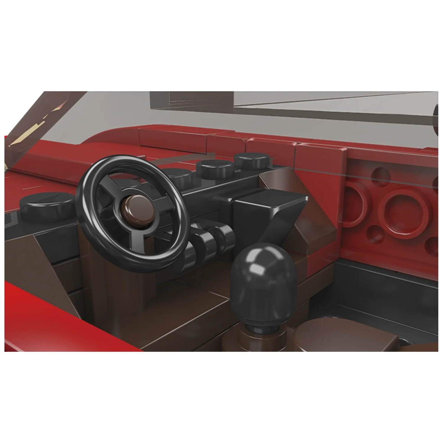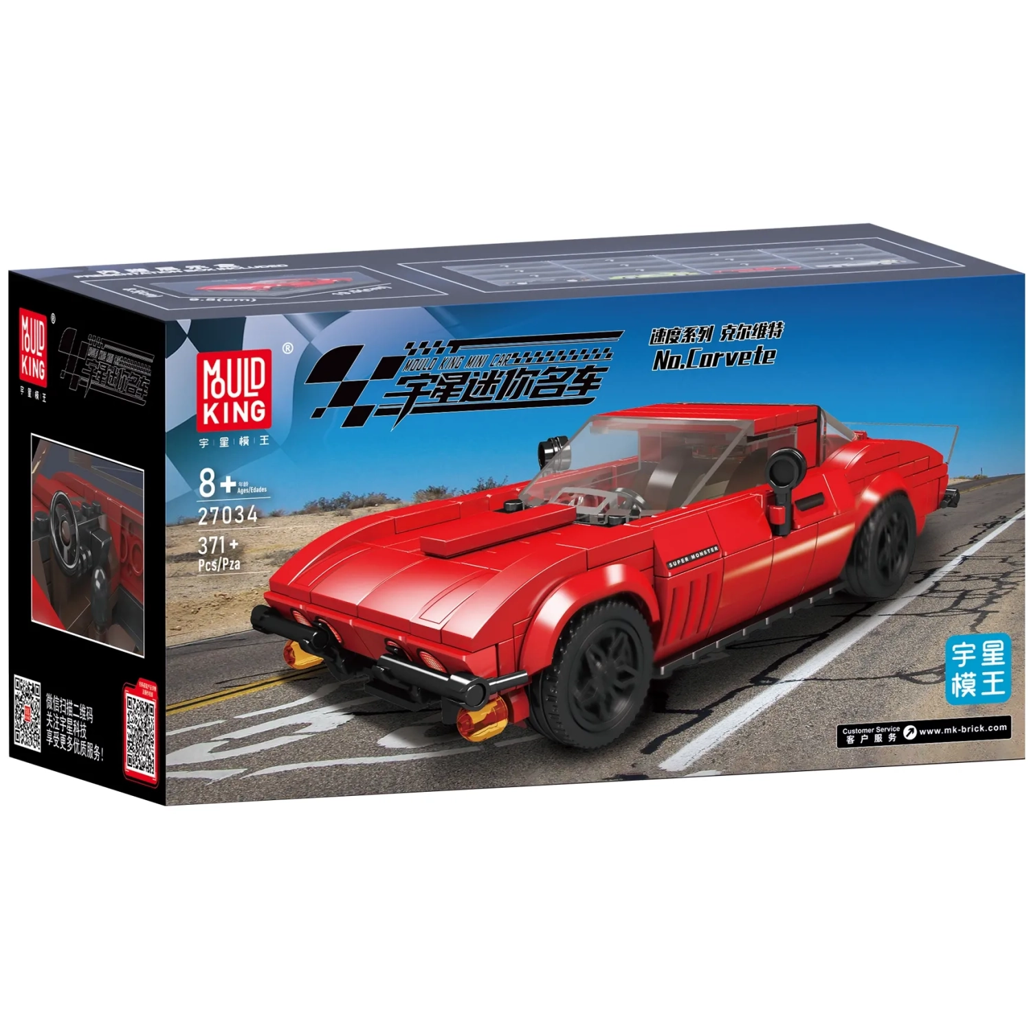 The Mould King® Corvette Sports car model is created with 371 pieces and designed for ages 8 and up. The car model has a steering wheel, a streamlined body, a transparent and environmentally friendly windshield, a large rear wing and sliding tires.