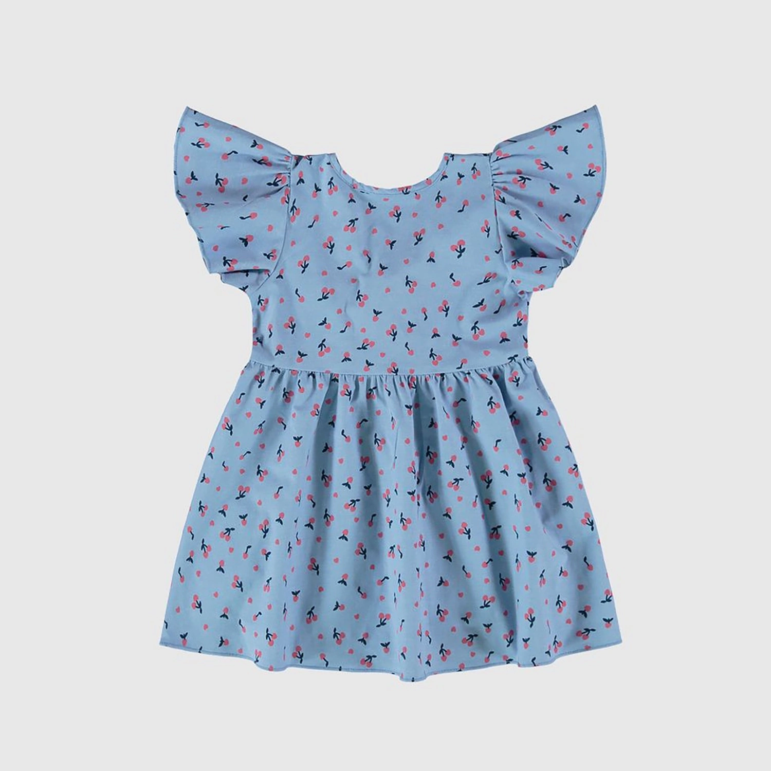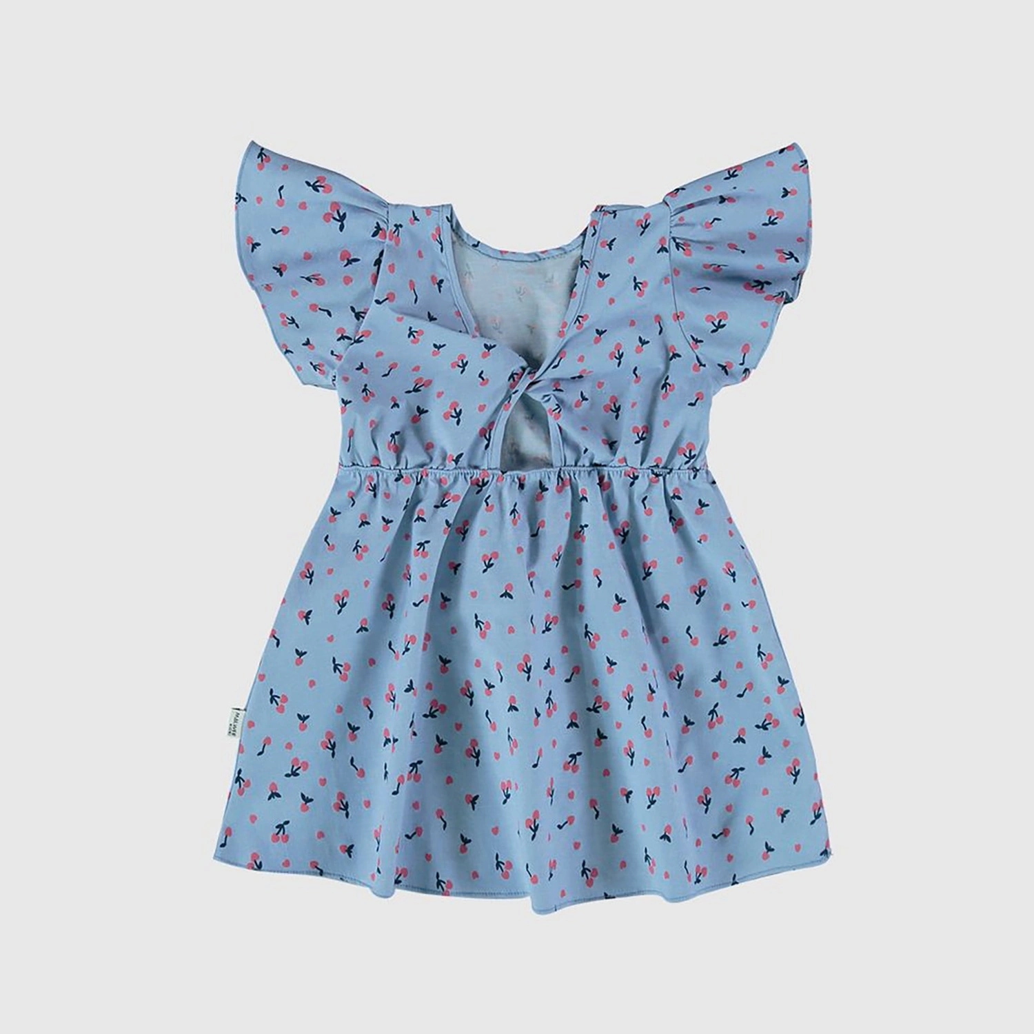 This charming toddler dress is made from soft cotton chambray and features a round neckline, short sleeves, and a back keyhole opening. The playful cherry print adds a sweet touch to everyday comfort.