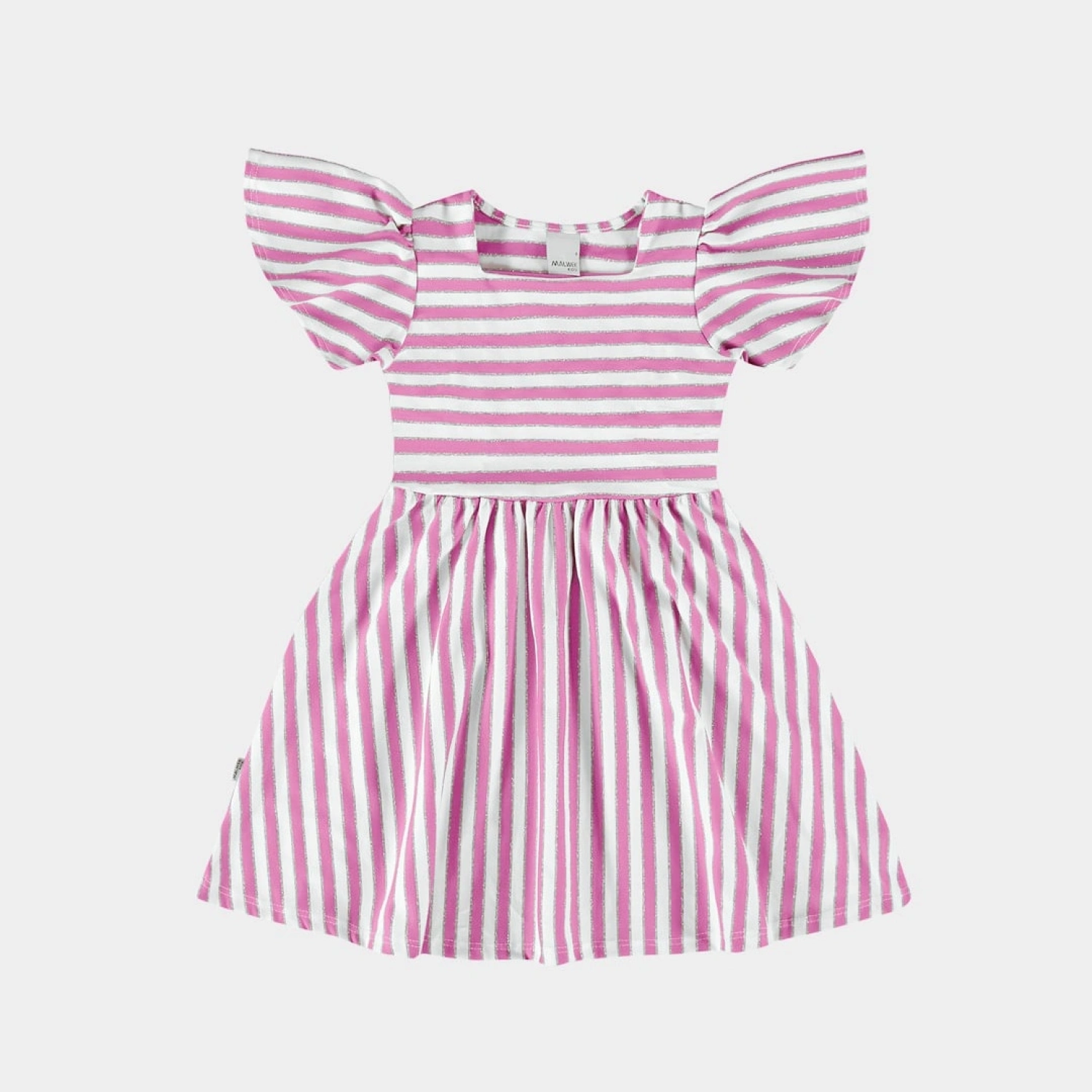 Made for everyday comfort, this striped knit dress features flared sleeves and a soft, breathable fabric that allows freedom of movement. Perfect for active toddlers who love style and ease.