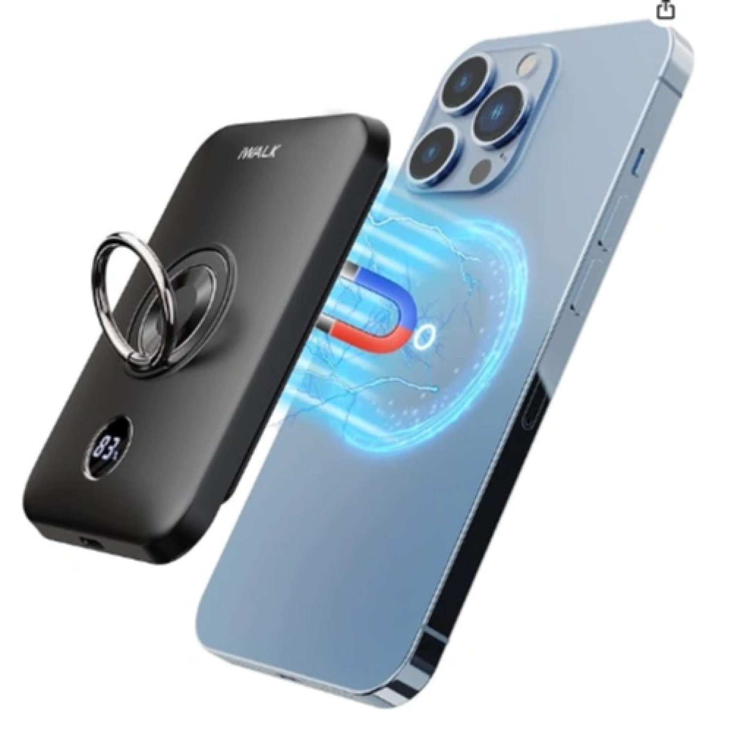 iWALK Magnetic Wireless Power Bank, 6000mAh Portable Charger with Finger Holder White