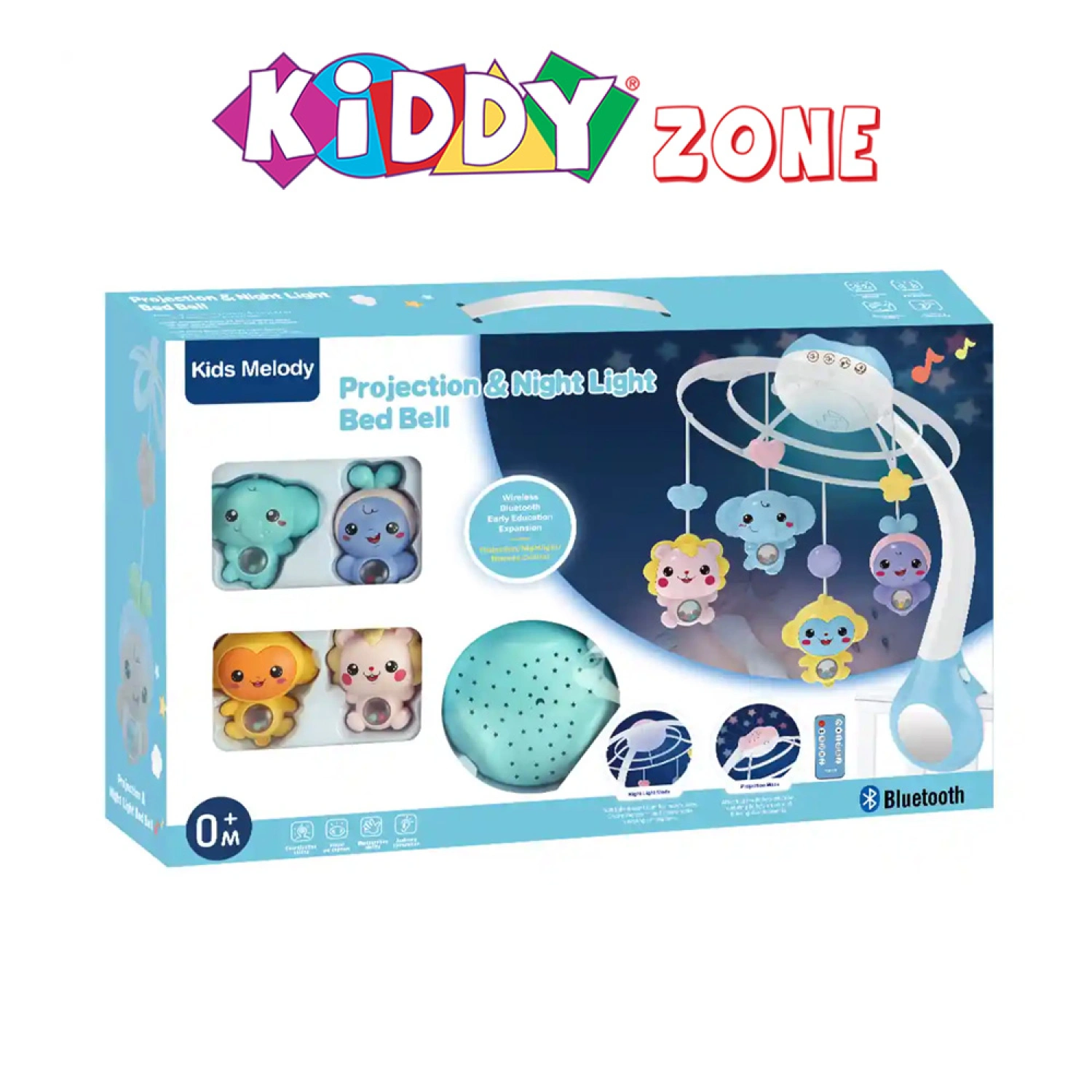 A multifunctional baby bed accessory featuring Bluetooth connectivity, projection night light, and soothing bell sounds. Helps calm and entertain infants while promoting sensory development. Suitable for newborns and above.