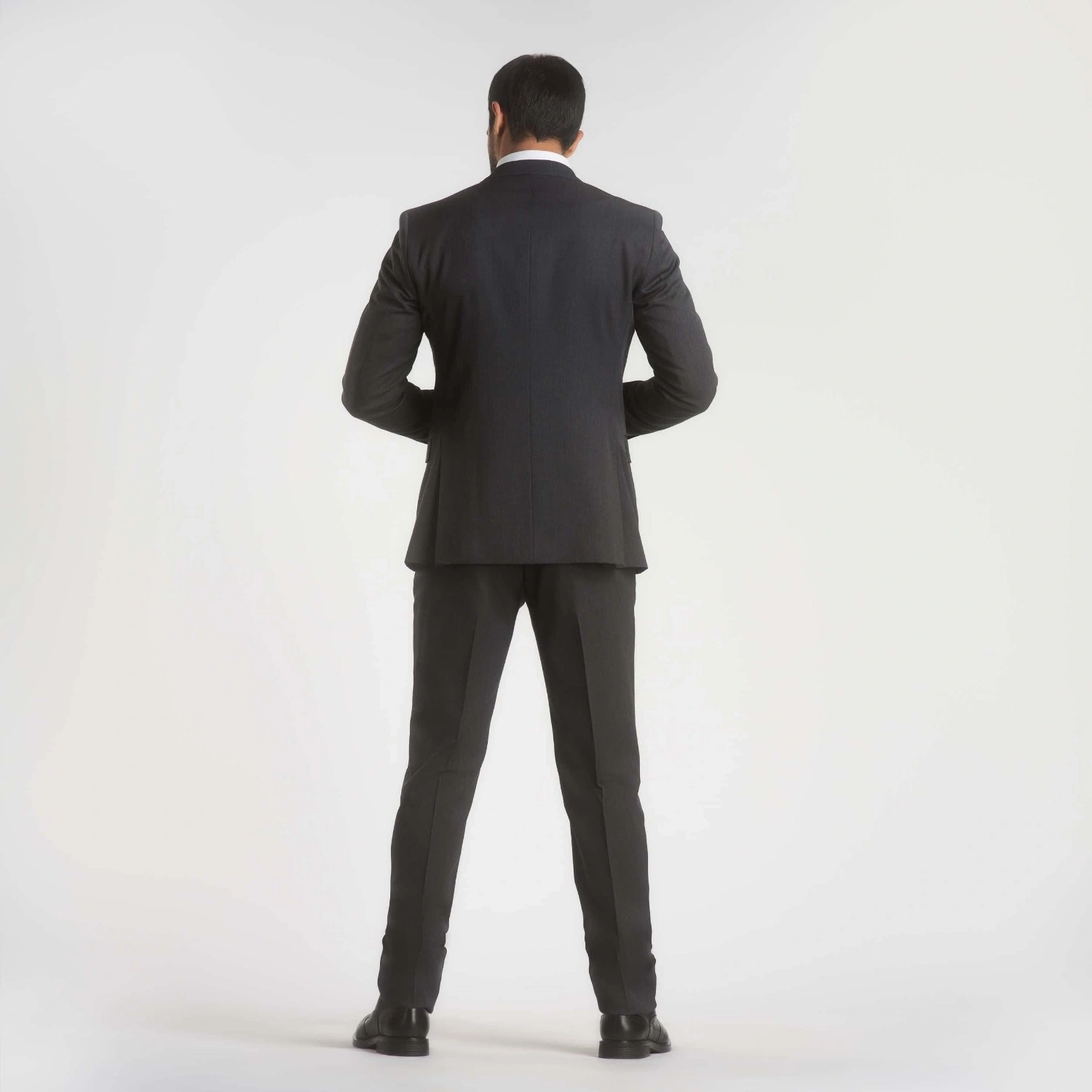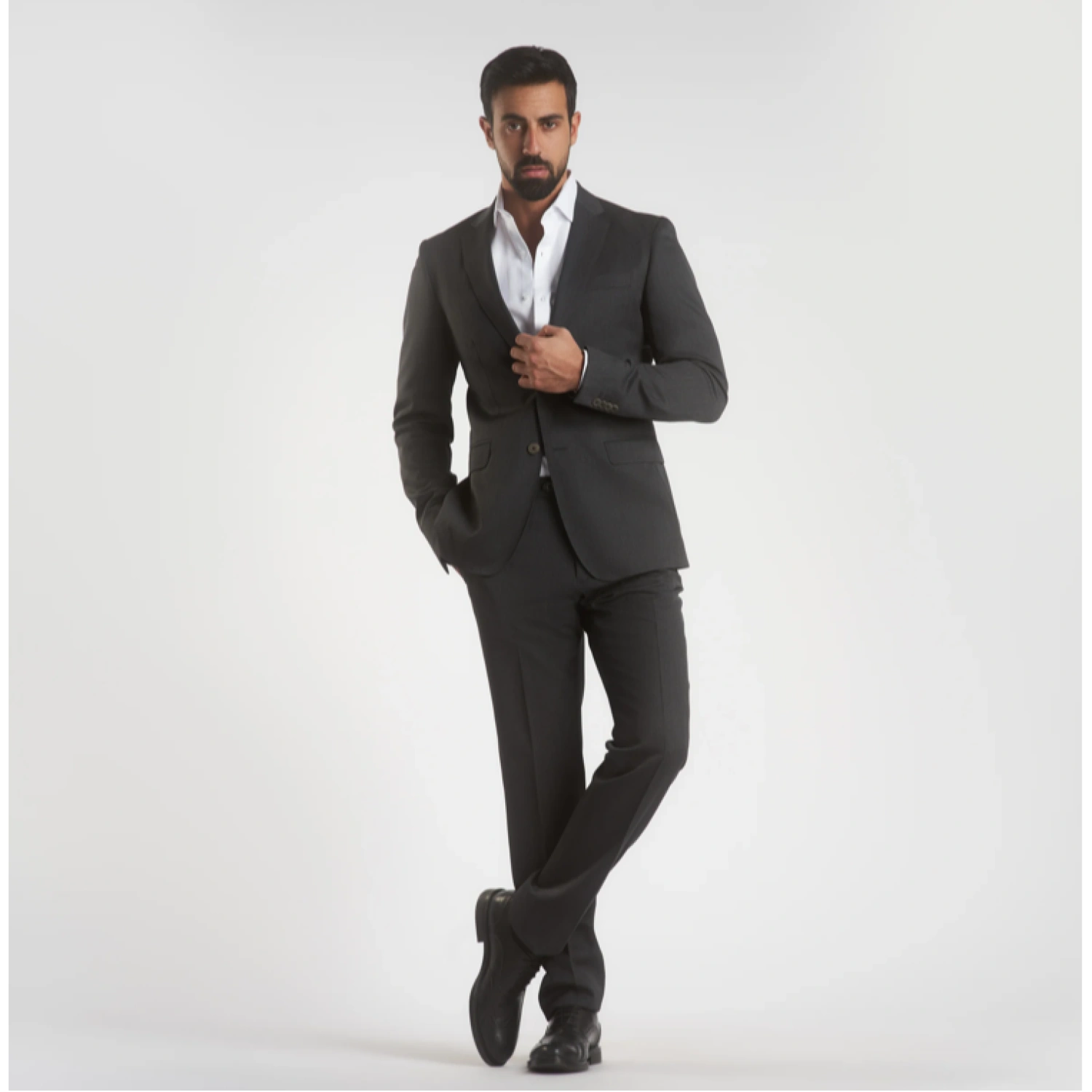 This suit is perfect for those who want to feel stylish and professional at the same time. The dark grey color is sure to make a statement, as it made from 88% wool, 8% Polyester, 4% lycra which blended to keep you warm and comfortable all day long. Plus, the lycra fabric ensures a great fit that will move with you. Whether you're headed to a meeting or out for dinner, this suit is sure to impress.