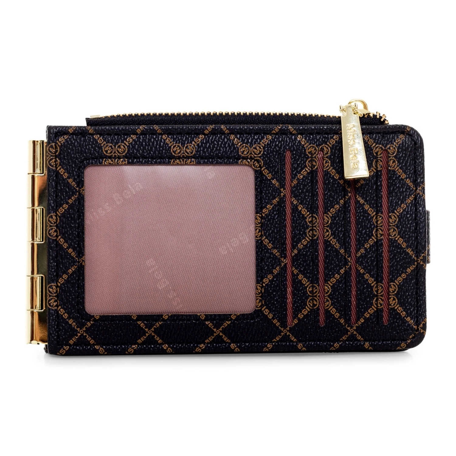 The Nora Wallet brings a bold signature style with a structured silhouette crafted in printed eco leather. Featuring an elegant gold-tone heart charm and a secure snap tab, it offers multiple card slots, a clear ID window, and a zippered pocket to keep everything perfectly organized. Measuring 14.5x9 cm, it is available in Caramel Monogram and Noir Monogram.