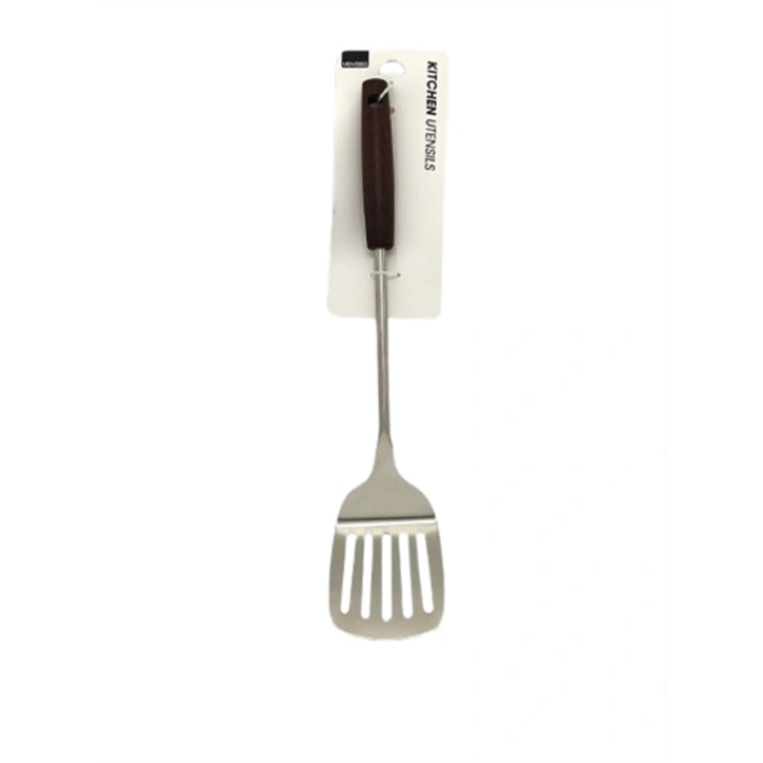 A stylish and durable slotted turner designed with an antique wood handle for a comfortable grip and classic look. Perfect for flipping, draining, and serving a variety of foods. Its heat-resistant stainless steel head ensures long-lasting use, while the ergonomic handle adds both elegance and practicality to your kitchen tools.