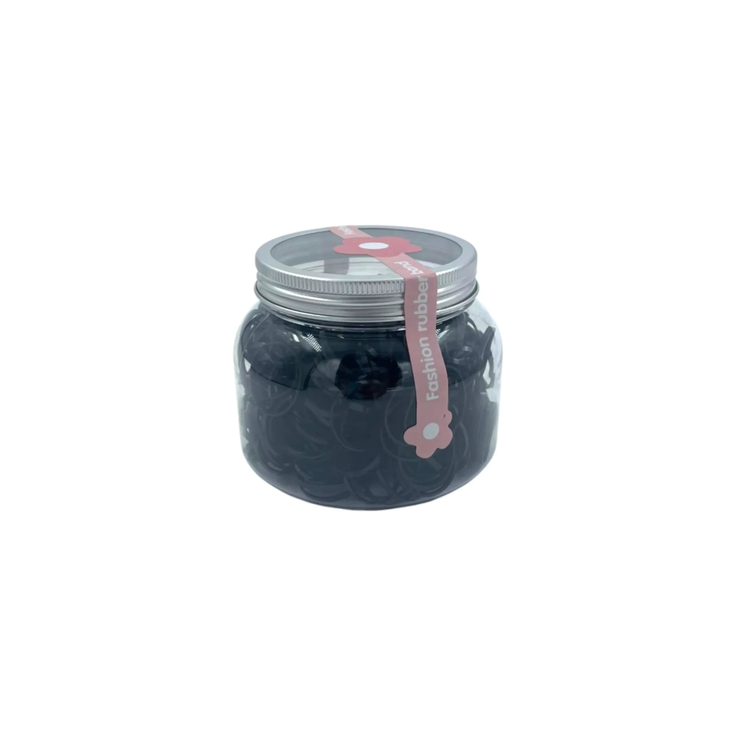 'A practical set of disposable rubber bands neatly stored in a barrel box for easy access. Ideal for hair styling, crafts, or organizing small items.