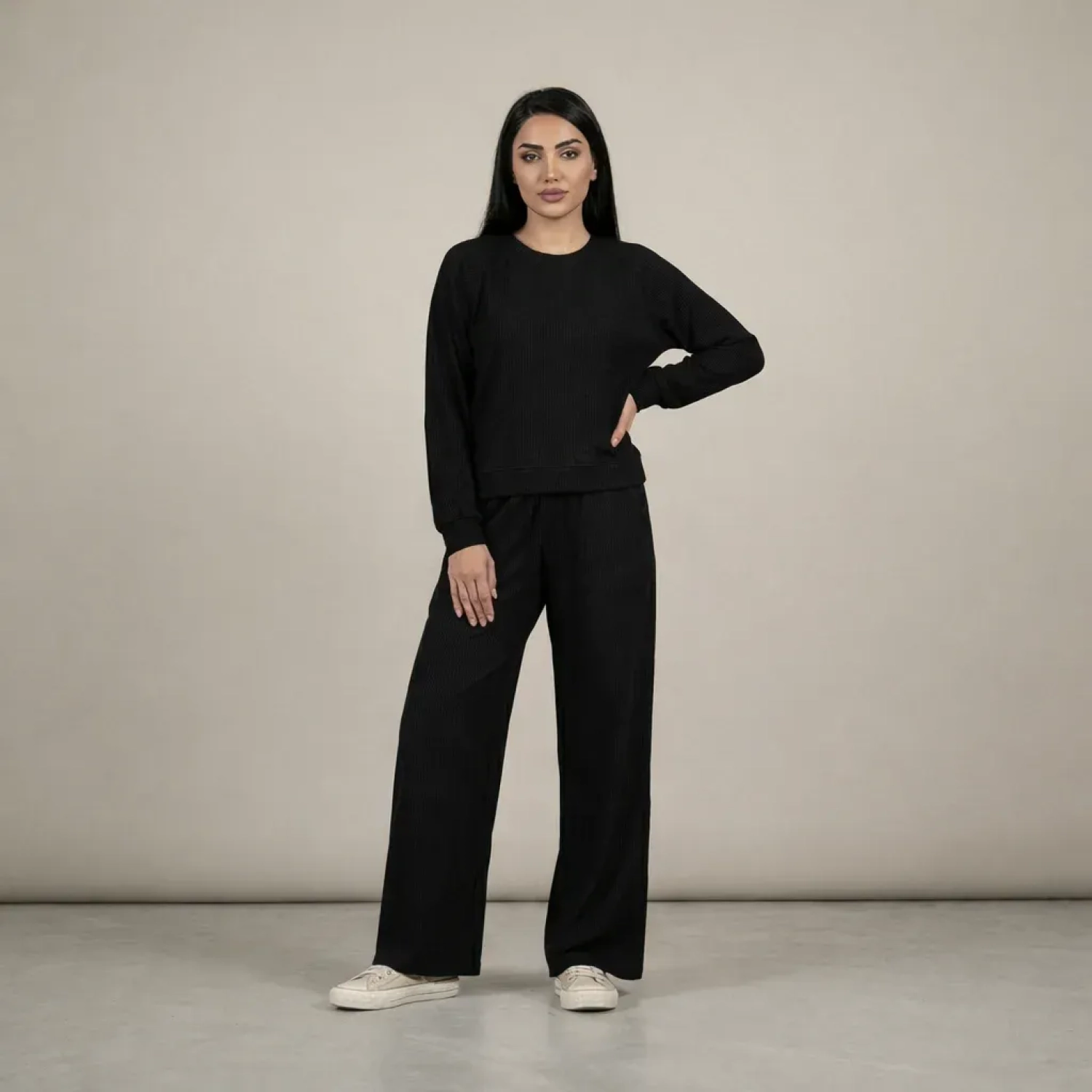 This women’s comfy set is designed for relaxed everyday wear while maintaining a clean and coordinated look. The set includes a comfortable sweatshirt with a classic round neckline, paired with matching pants featuring a soft waistband and adjustable rope for ease and flexibility. The plain design gives this set a versatile feel, making it suitable for lounging, casual outings, or laid-back smart-casual styling. Available in 4 essential colors, this set is a go-to choice for comfort and effortless style.