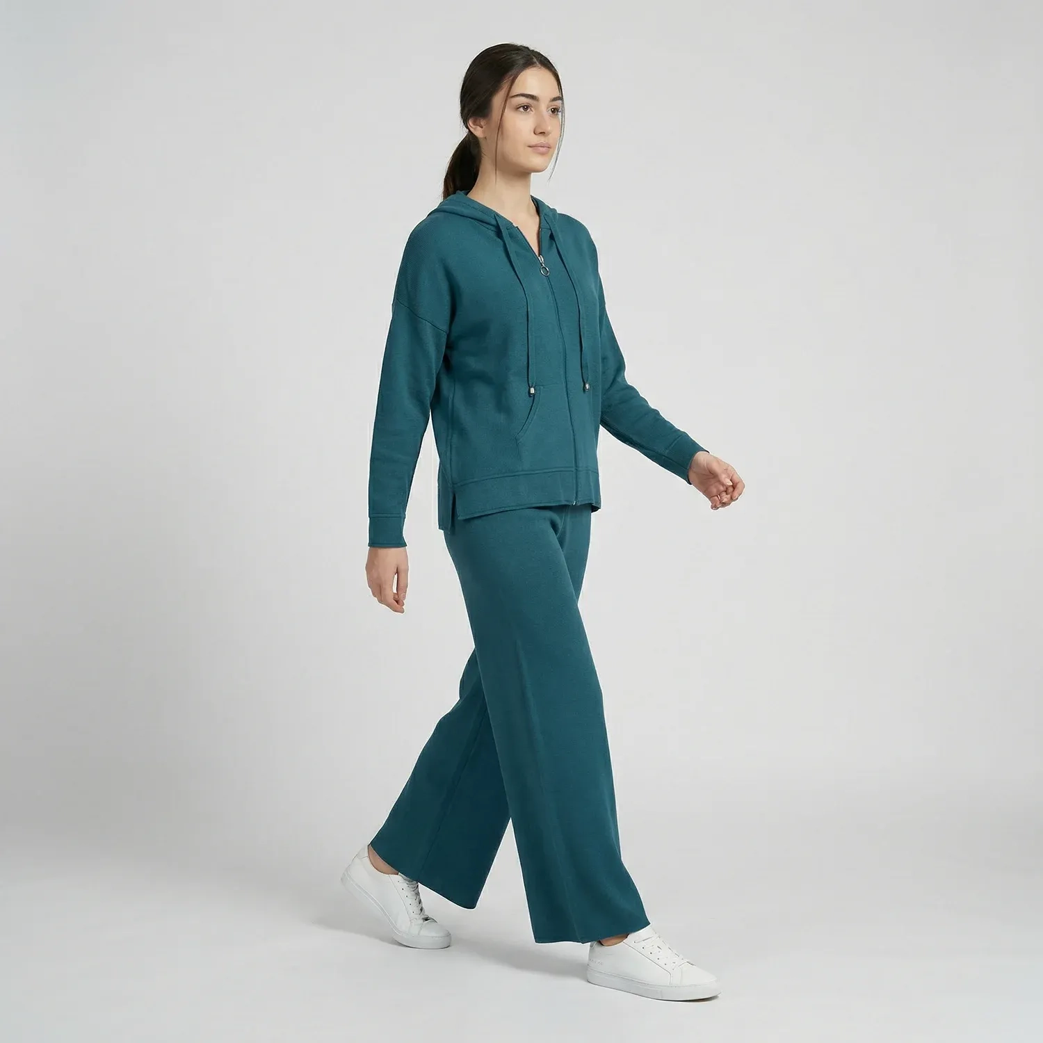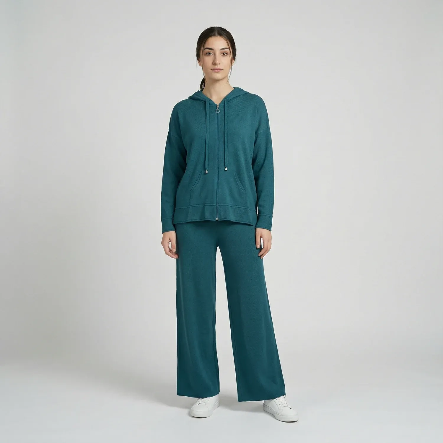 The jacket has an adjustable drawstring at the waist, allowing you to create a more fitted or relaxed look. Made from soft, flexible fabric, this set is ideal for morning walks, travel days, or staying comfortable while running errands. It offers a complete, trendy look that is easy to wear and always looks put together.